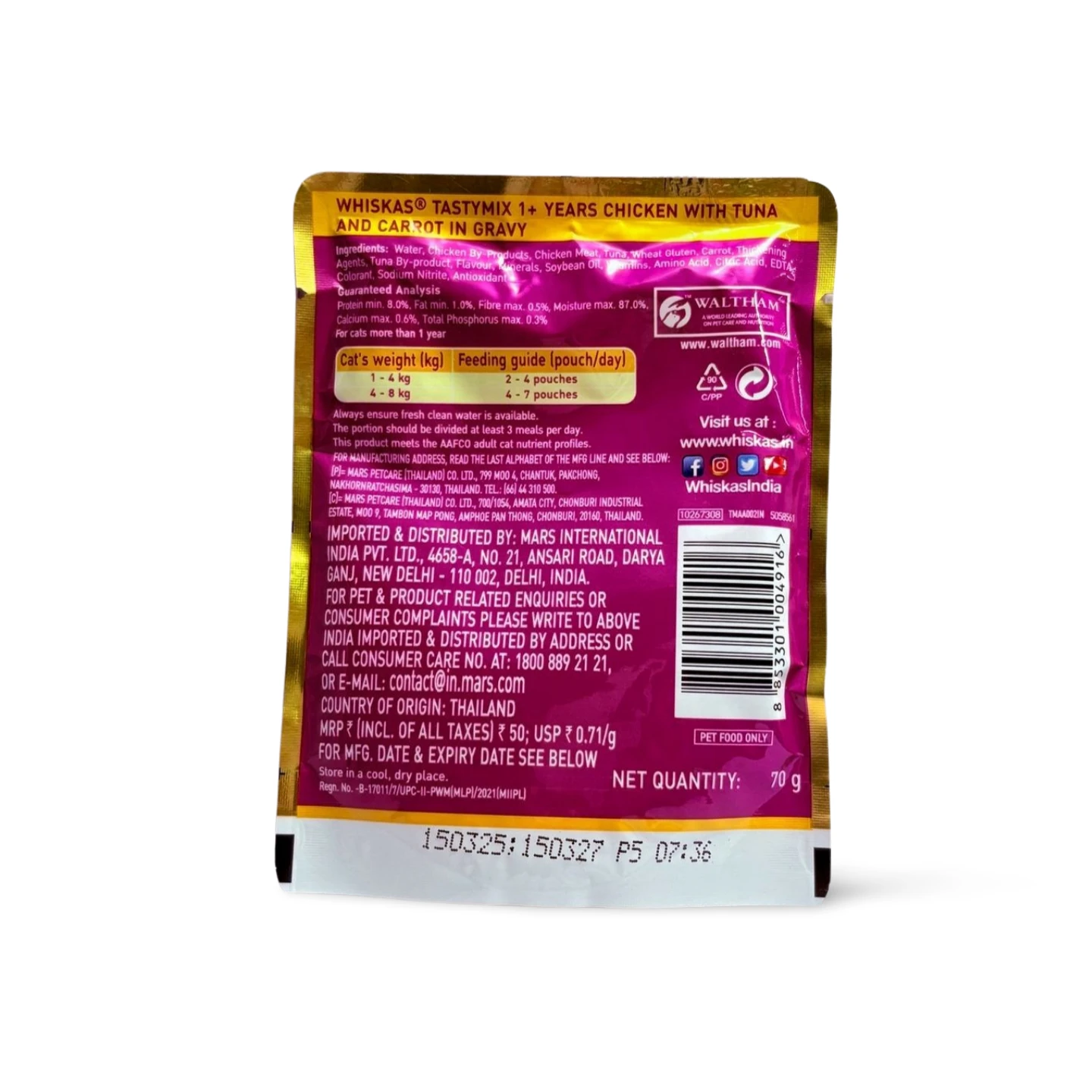 WHISKAS TASTY MIX CHICKEN WITH TUNA & CARROT IN GRAVY 70 GM